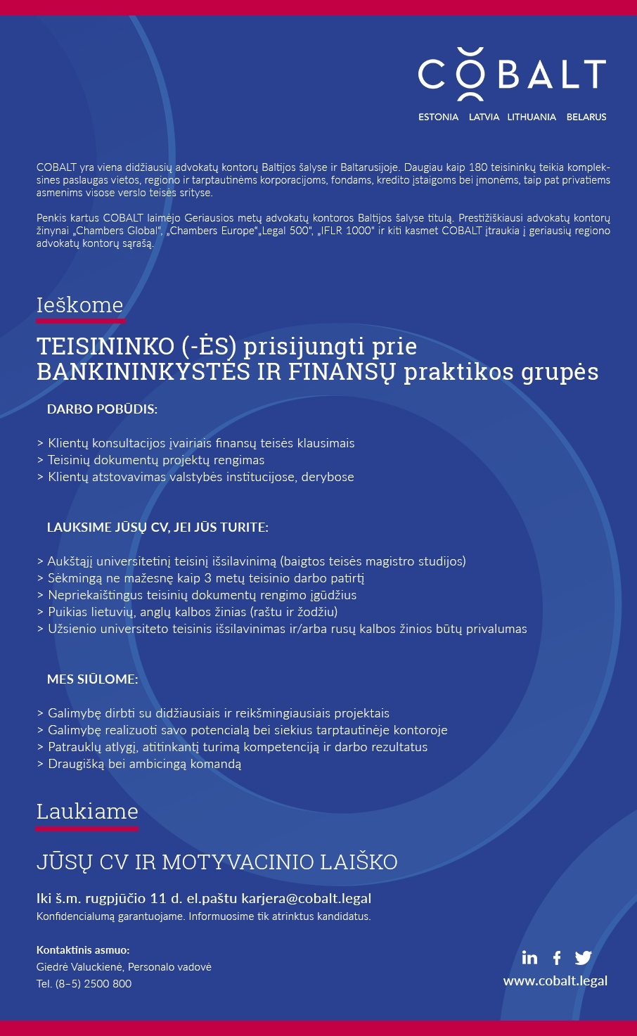 Teisininkas (-ė) (bankininkystės ir finansų sritis)