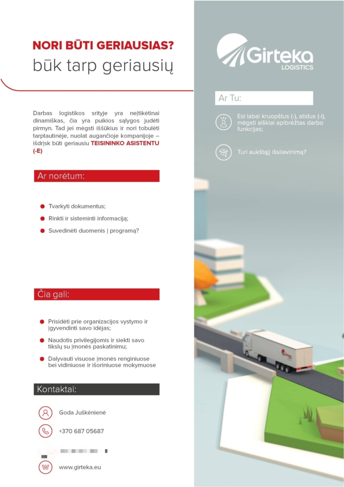 Girteka logistics, UAB Teisininko asistentas (-ė)