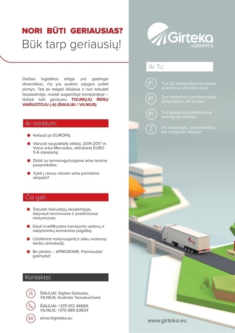 Girteka logistics, UAB TOLIMŲJŲ REISŲ VAIRUOTOJAS (-A) (ŠIAULIAI / VILNIUS)