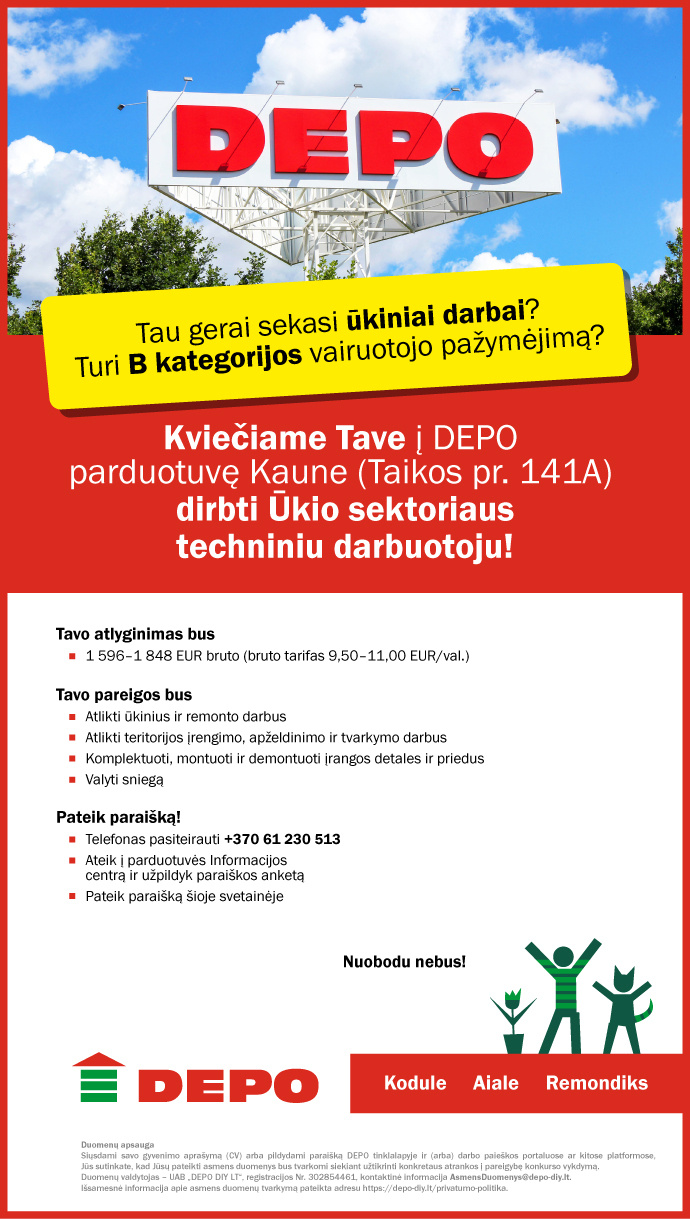Ūkio sektoriaus techninis darbuotojas Kaune (Taikos pr. 141A)