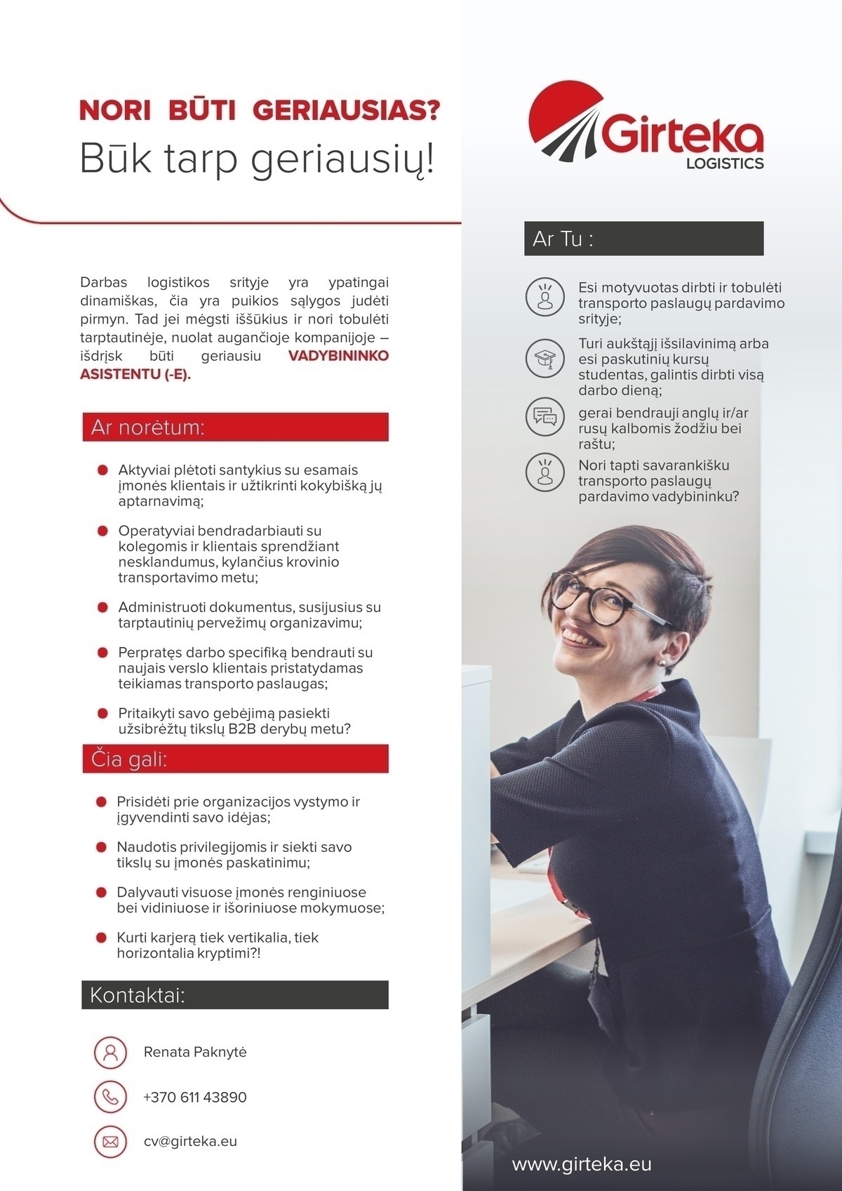Girteka logistics, UAB VADYBININKO ASISTENTAS (-Ė) (PATIRTIS NEBŪTINA)