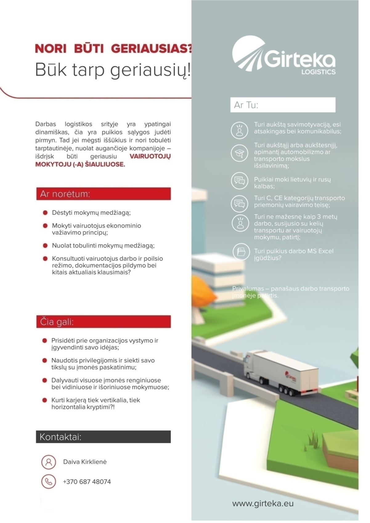 Girteka logistics, UAB Vairuotojų mokytojas (-a) Šiauliuose