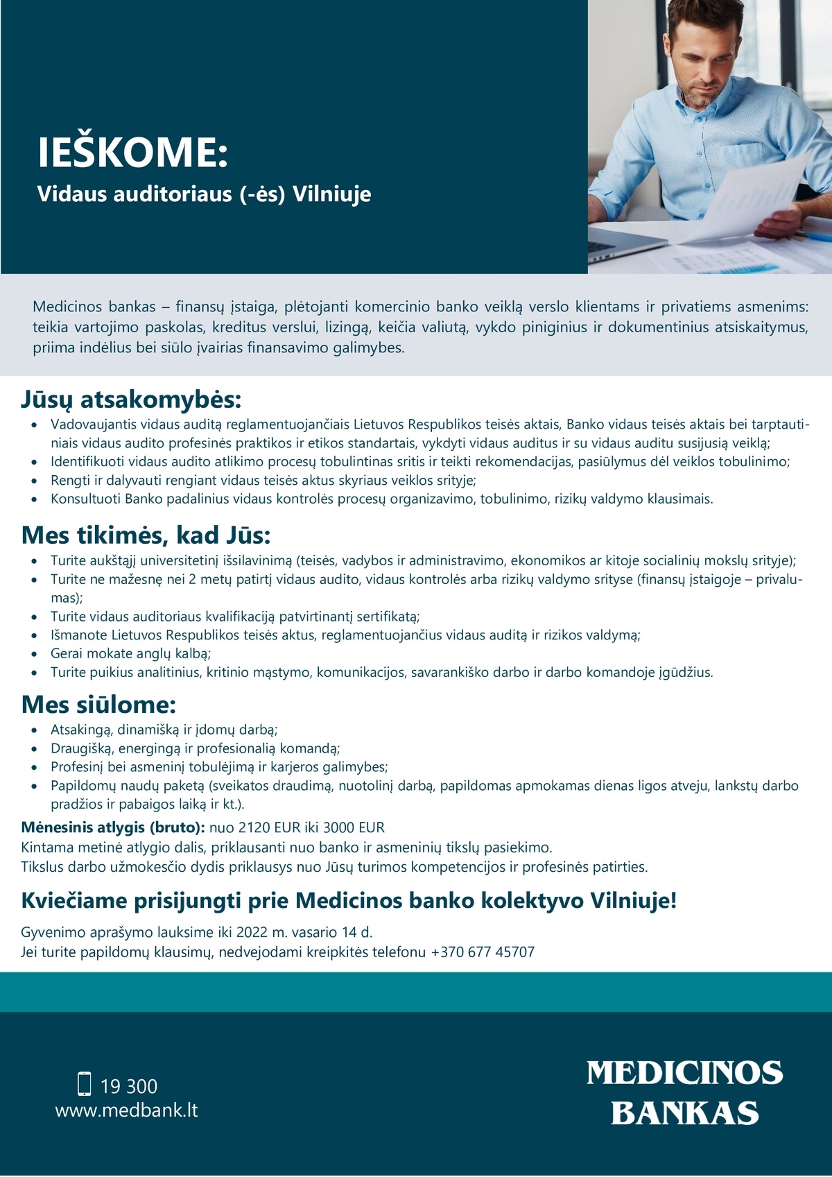 • Išmanote Lietuvos Respublikos teisės aktus, reglamentuojančius vidaus auditą ir rizikos valdymą;