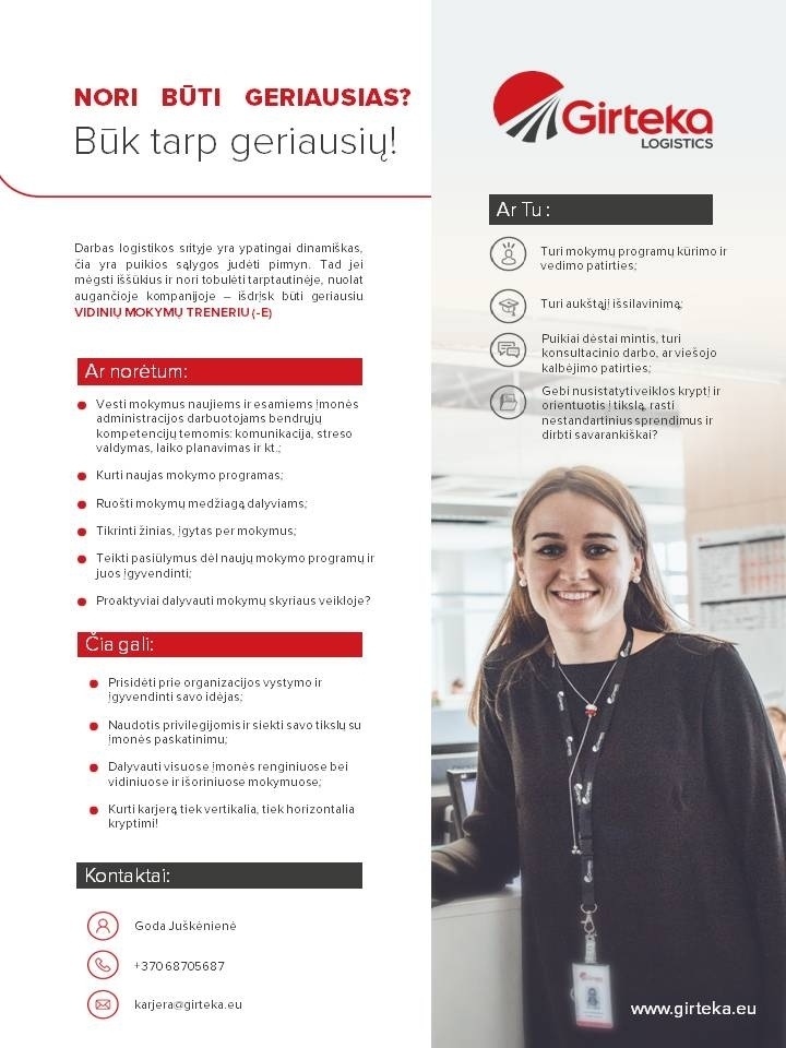 Girteka logistics, UAB VIDINIŲ MOKYMŲ TRENERIS (-Ė)