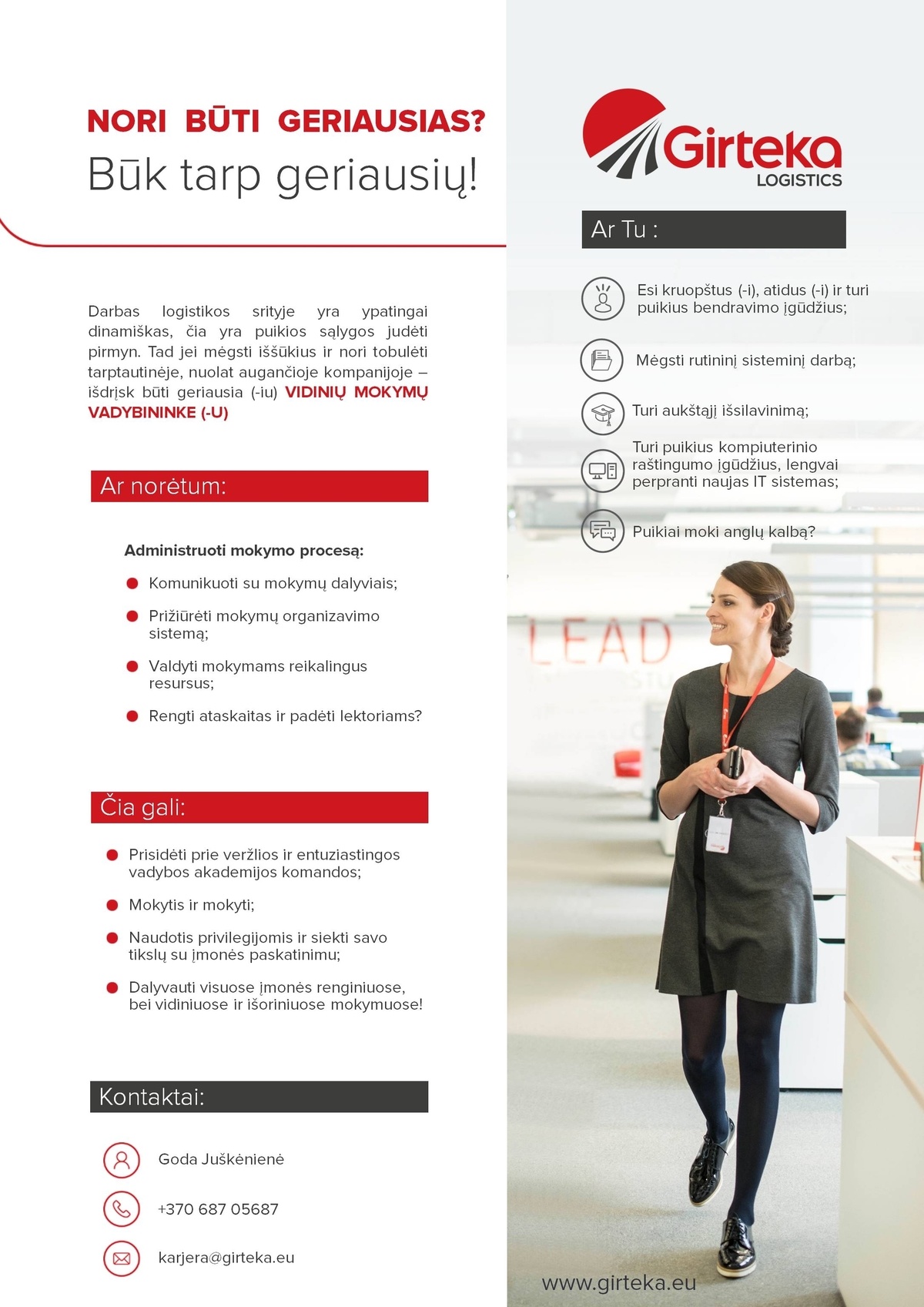 Girteka logistics, UAB VIDINIŲ MOKYMŲ VADYBININKĖ (-AS)