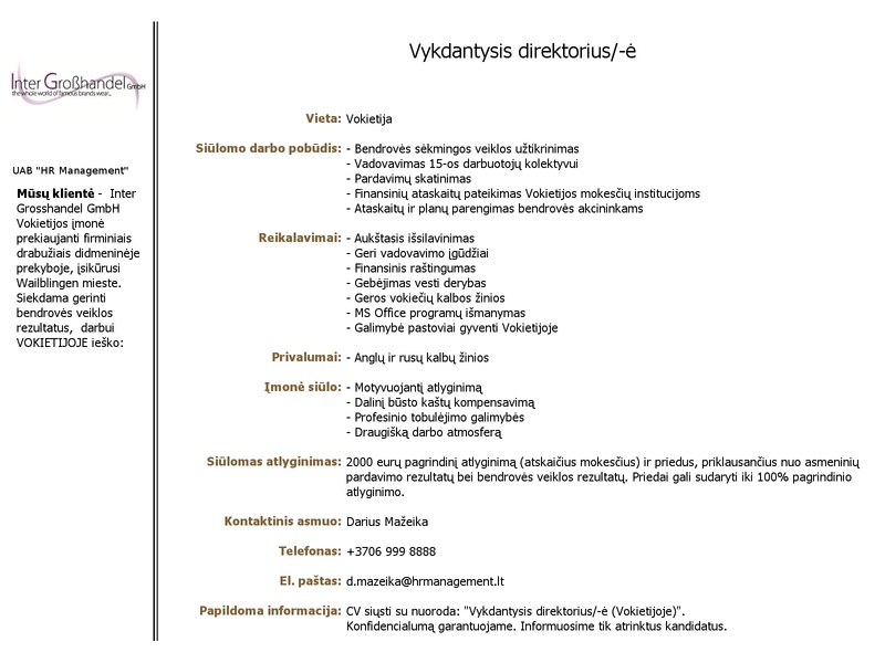 Rodyti darbo skelbimus: