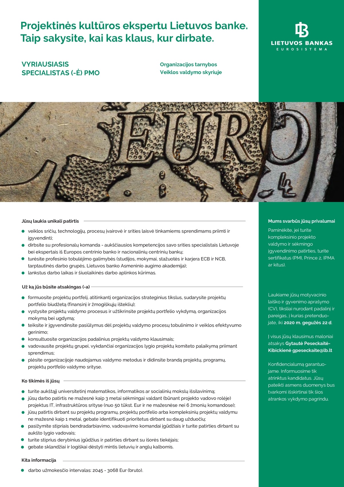 Laukiame jūsų motyvacinio laiško ir gyvenimo aprašymo (CV), tiksliai nurodant padalinį ir pareigas, į kurias pretenduojate, iki 2020 m. gegužės 22 d.